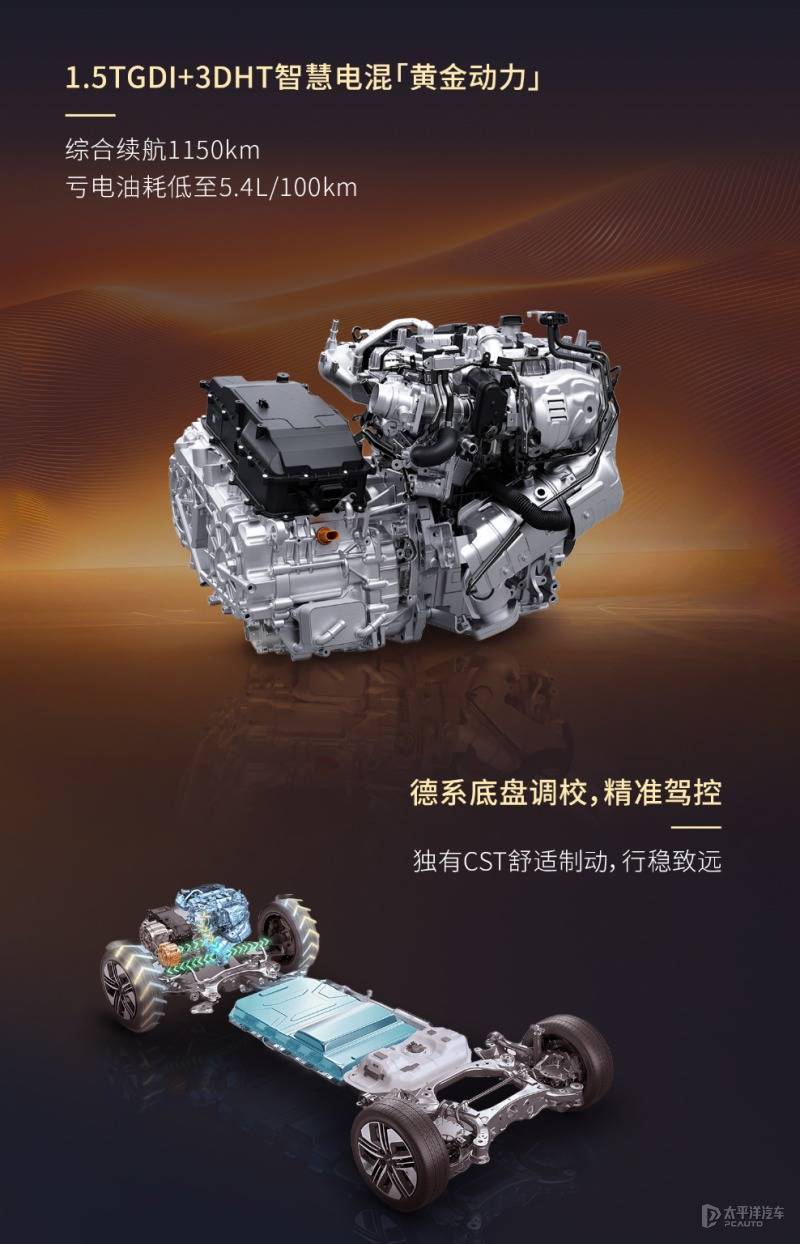 新车定位为中大型MPV,搭载插电式混合动力系统,CLTC纯电续航里程150km,综合续航1150km。